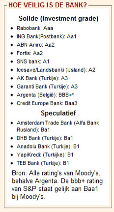 Afgelopen zomer werd ik overspoeld met reclames van allerlei nieuwe internetspaarbanken die mij hoge rentes beloofden. Soms wel twee keer zo veel als die luizige 2,5 procent bij de Postbank. Opvallend waren vooral de hoge rentes van de Amsterdam Trade Bank (eigendom van de Russische Alfa Bank) en IceSave (IJslandse Landsbanki). Verder had zich nog een hele rits Turkse banken in de slag om de spaarder gemengd, zoals de Anadolu Bank, YapiKredi en de TEB Bank.